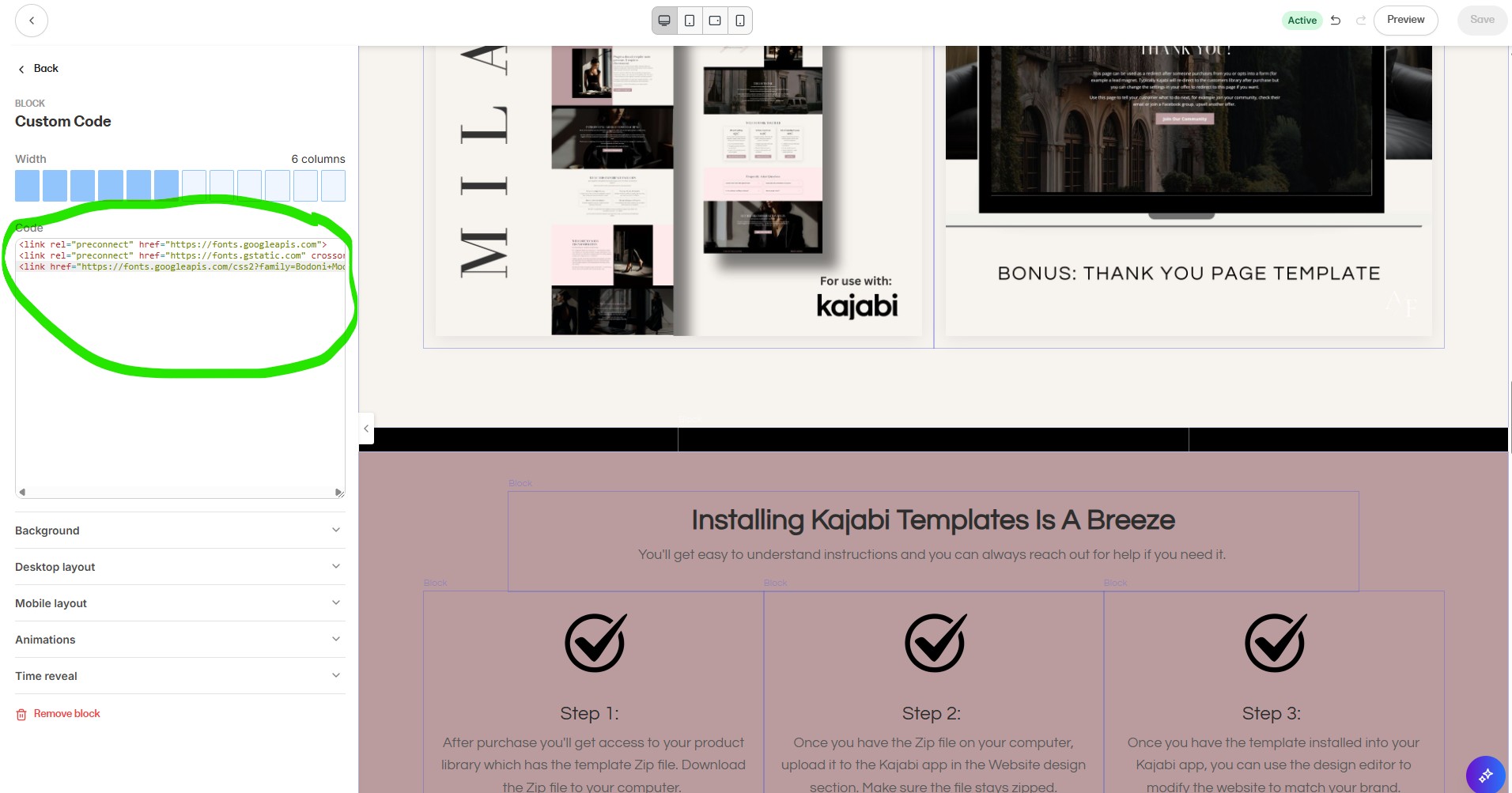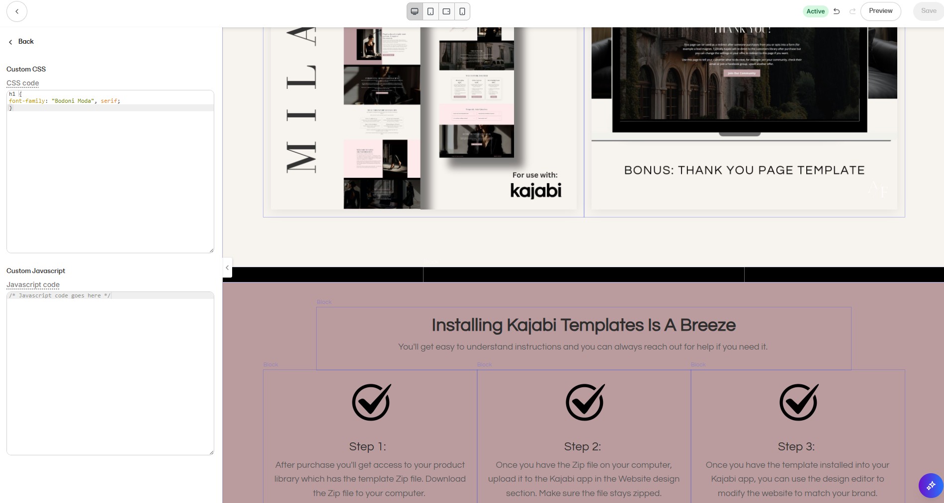 Step 2: Add a Custom Code Block in your Kajabi app