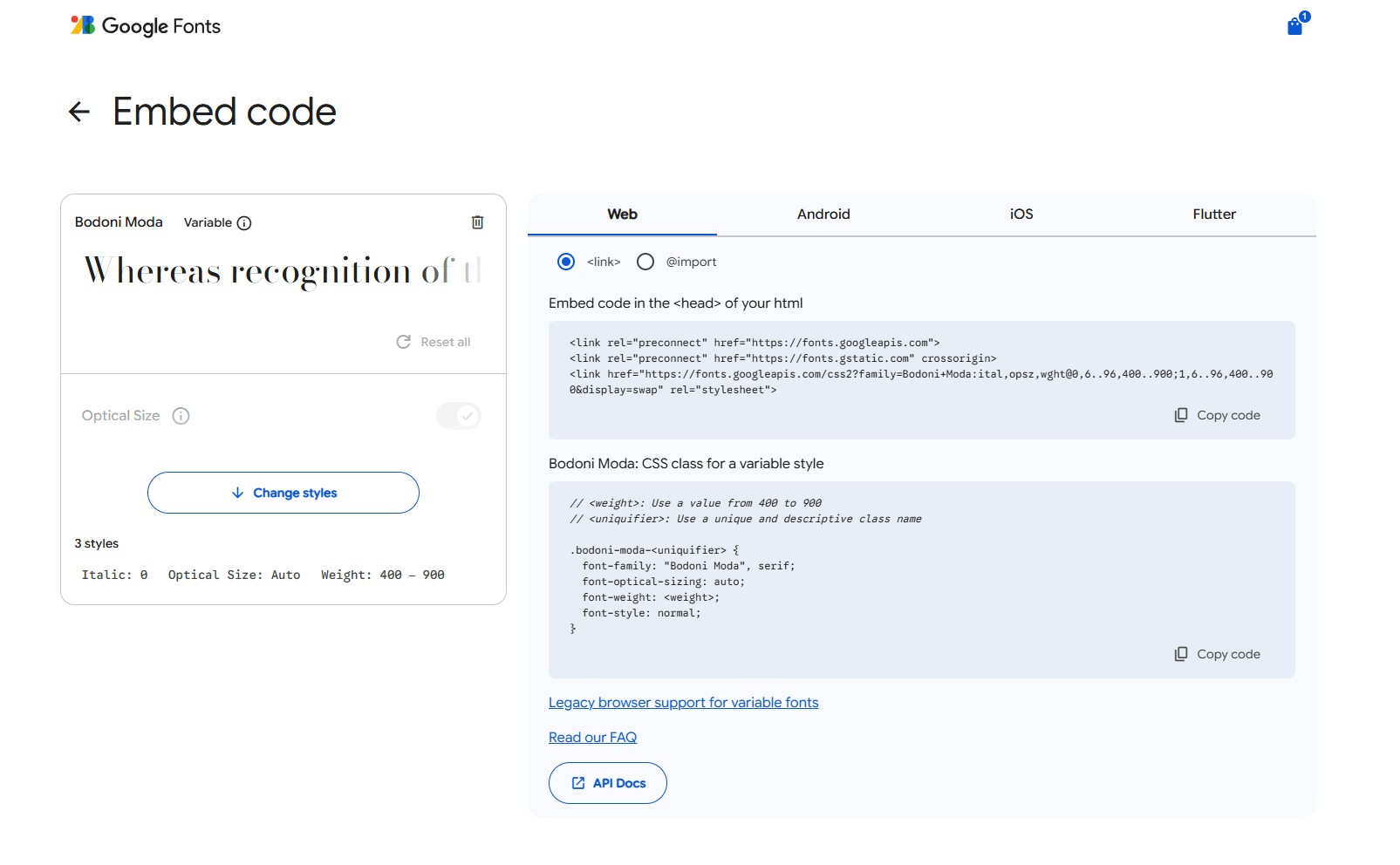 For example here I used Bodoni Moda so I'll copy and paste that to replace the YOUR CODE HERE.