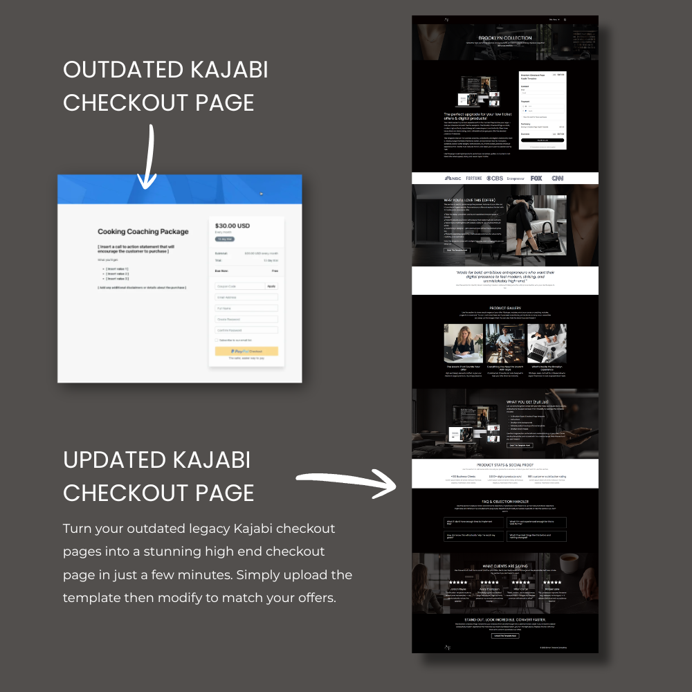 Kajabi recently improved their checkout system, which is great… but the default templates still look generic. They don’t reinforce your brand. They don’t position you as the authority. And they definitely don’t create the kind of buying experience that gets people excited to purchase.