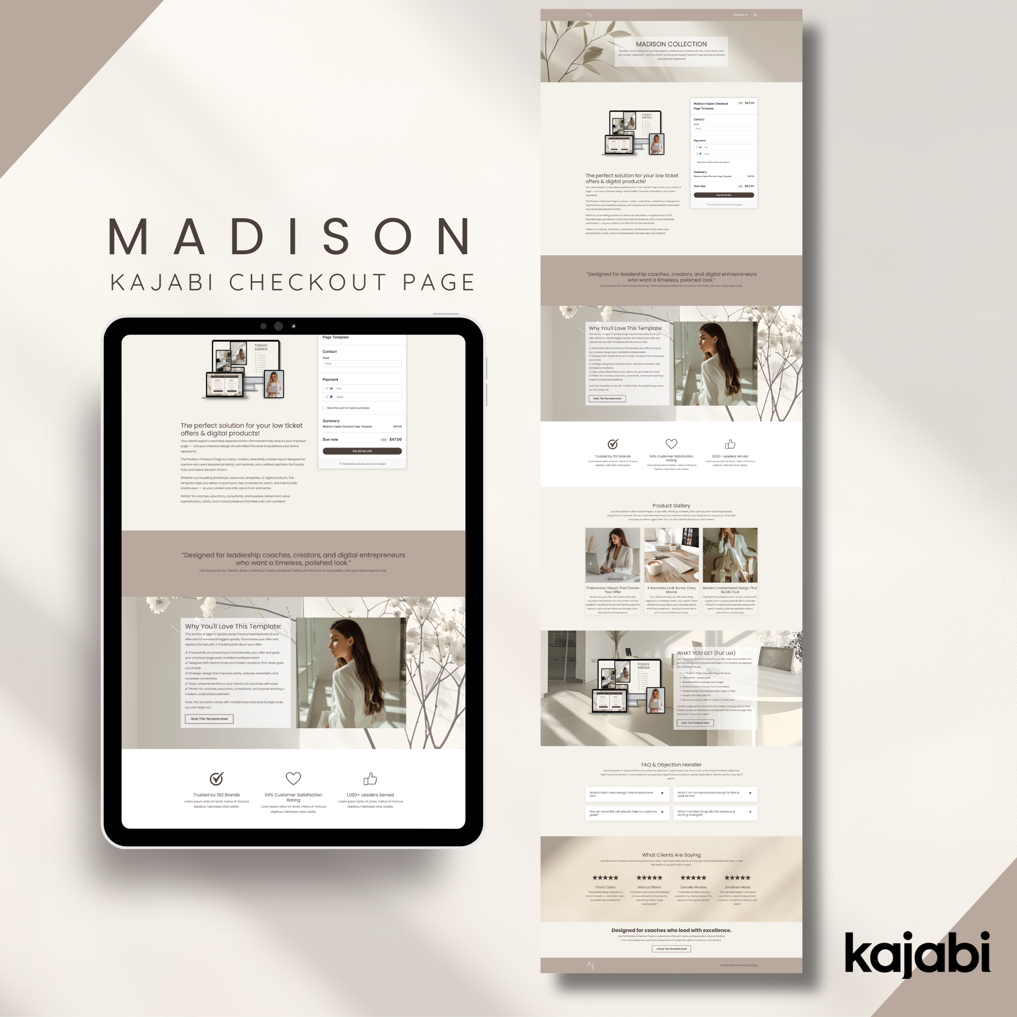 If your brand is refined, aesthetic-driven, and leans toward white and cream tones, Madison will elevate your checkout page instantly. It brings a soothing, polished elegance that builds trust without trying too hard.