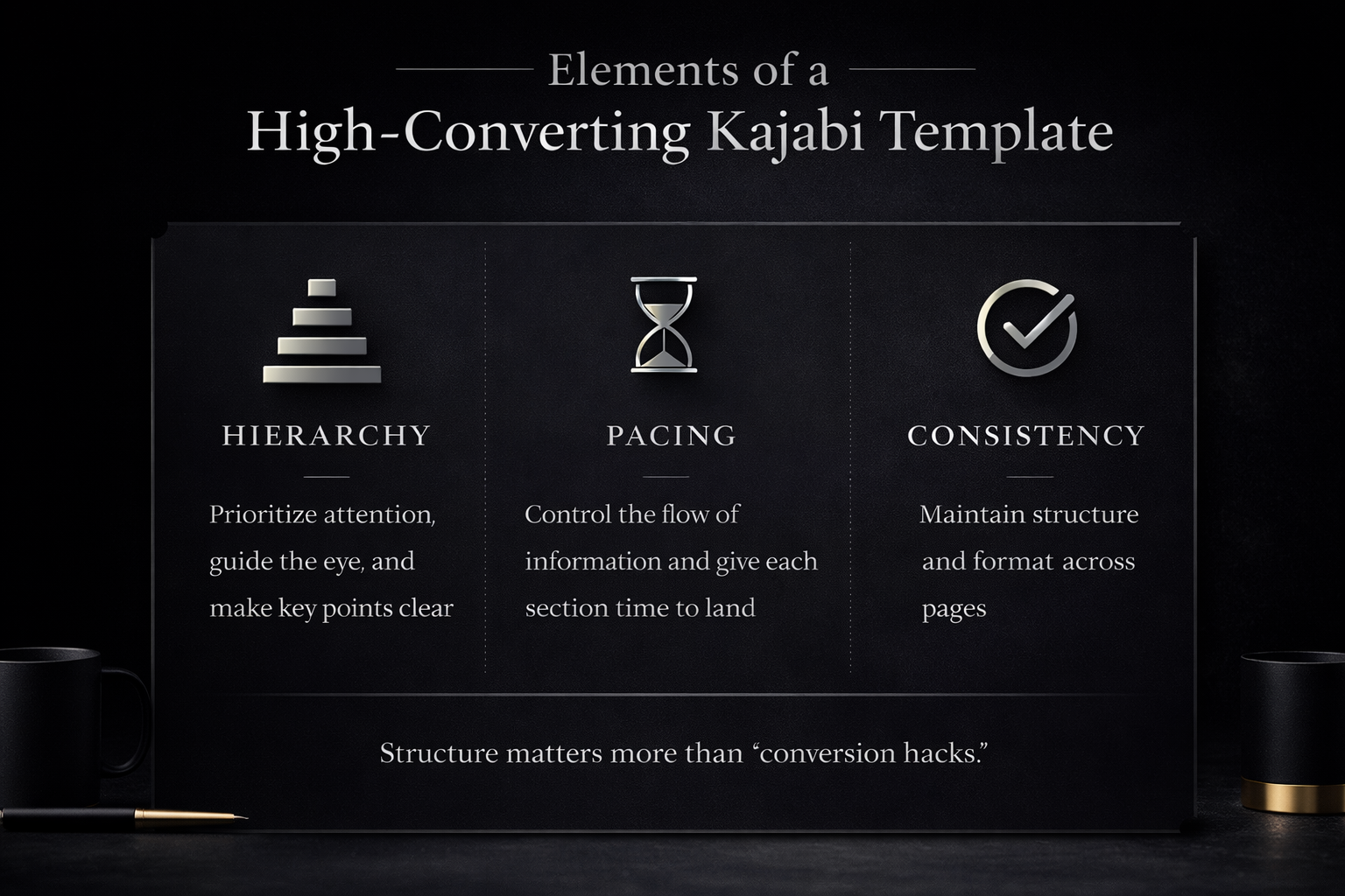 A Kajabi template doesn’t convert because it’s beautiful. It converts because it creates order. When structure is handled well, the content has room to do its job. When structure is sloppy, even strong offers struggle to land.